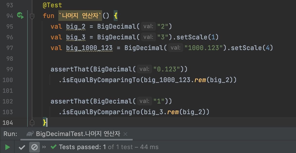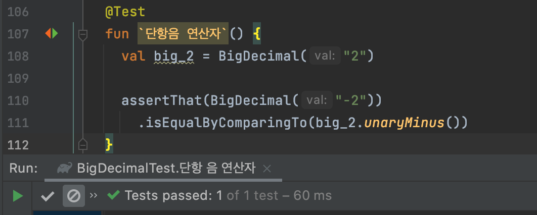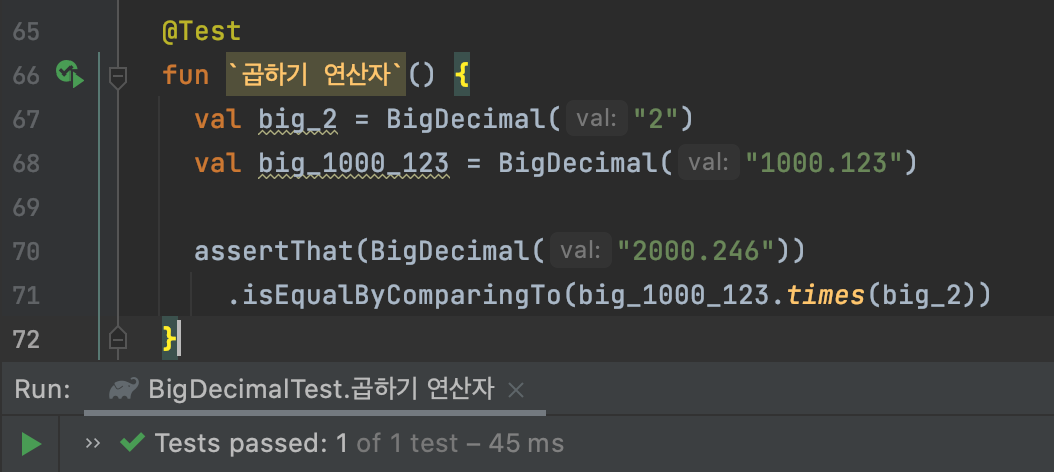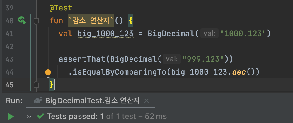BigDecimal의 값을 비교할 때는 compareTo 라는 메서드를 사용한다.