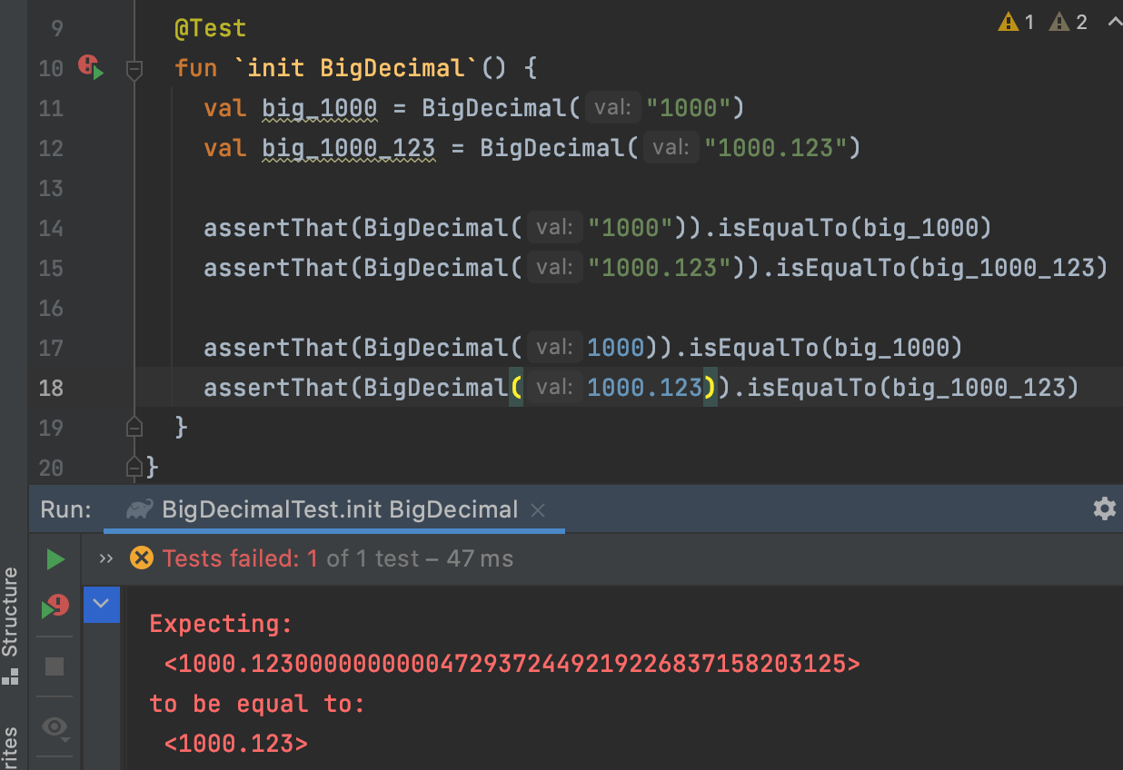 double을 넘겨주면 double의 이상한 근사치값을 그대로 사용한다.