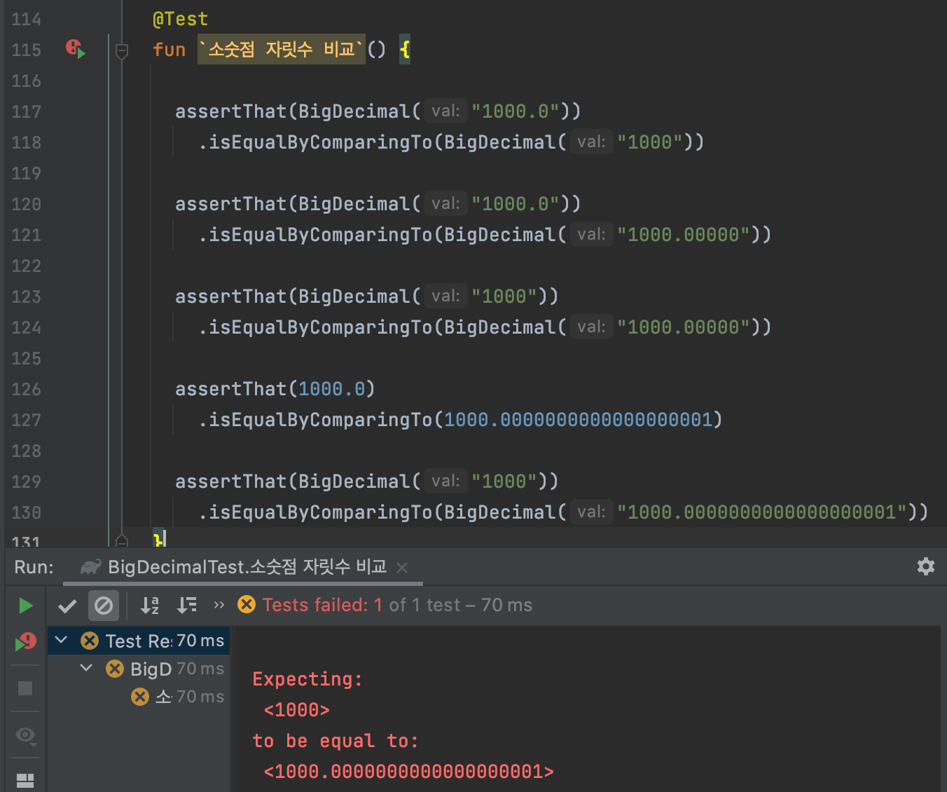 BigDecimal을 사용핼 땐, 문자열을 인자값으로 넘겨줘여 한다.